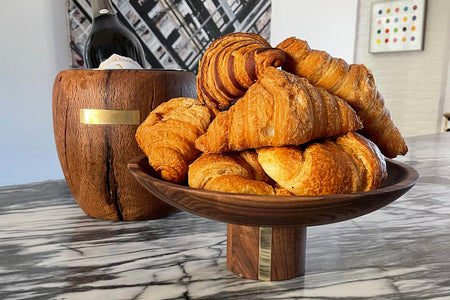 This artful and elegant bowl literally elevates anything put into it. Available in white oak, ebonized oak and black walnut with inlaid brass in the base.
